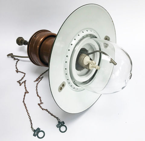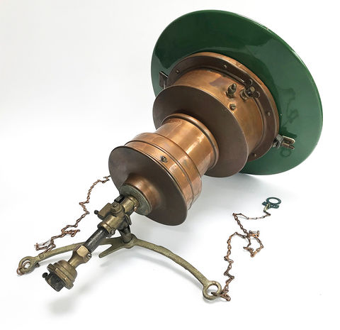 Original Southern Railway suspended Sugg gas light. This light is in incredible condition and is one of the best un-restored examples we have seen. Probably used in an internal location, perhaps in a station waiting room environment. All the correct components are present, including the glass shade and original ceiling hanging bracket. Ready to be re-instated or converted for use in your man cave. Please view the images for condition details