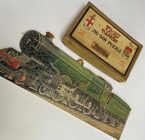 An original boxed GWR jig-saw puzzle illustrating the steam locomotive King George V. A powerfully impressive GWR 1930’s promotional puzzle in good complete condition, hand cut from solid plywood with around 150 unique shaped pieces – please view images for condition details.