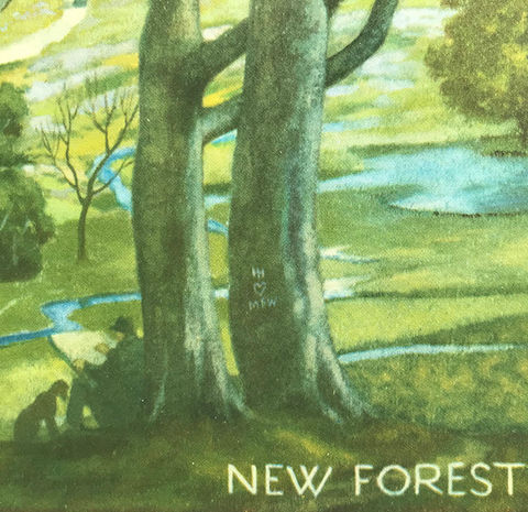 A very original glazed Southern Railway carriage print, depicting The New Forest by Hesketh Hubbard. Mahogany framed, in very good condition, ready to screw to your study wall.