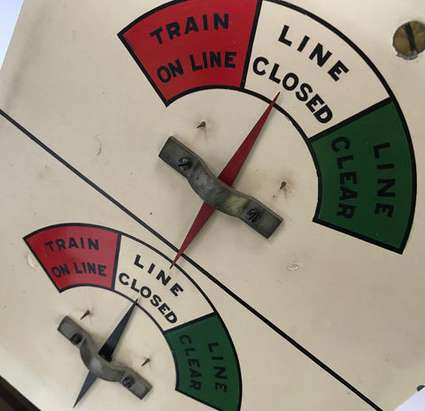 Great Central Railway Tyers Double Line Block Instrument in every good original condition complete with ‘Wortley West’ description plate. All internal equipment present including case fixings and original lock & key. Rotor turns freely presenting the following window displays 6, 5, 4, 3, 2, Train on Line, Line Closed, Line Clear. H 500 W 310 D 210