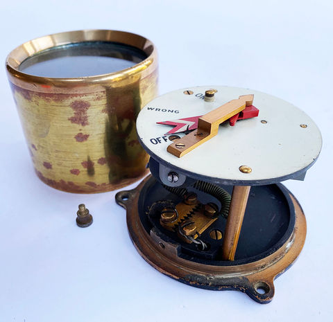 Great Western Railway brass home signal repeater instrument manufactured by Tyer & Co. Ltd. This beautiful little repeater is in excellent original condition and appears to be internally complete with free-swinging indicator needle. The dial face with delicate hand painted detail is also in wonderful condition. Will make a great addition to your collection.
