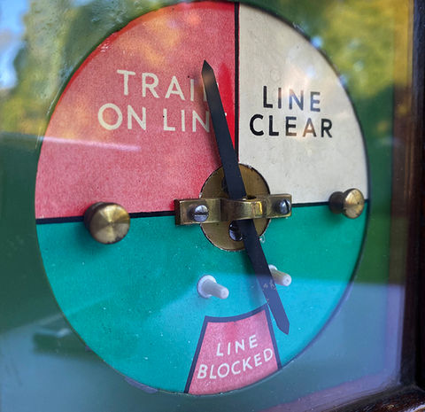 LNER single line block instrument in very good original ex-box condition. Solid mahogany case retaining the original French polish finish. The internal mechanism appears complete with a free-swinging indicator needle. Includes key with original working door lock which unfortunately does not engage with the side case to secure the door. H 280, W 200, D 100mm