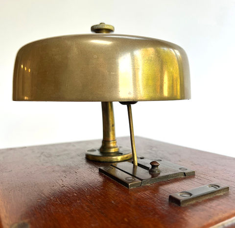 A beautifully balanced Midland Railway non tapper block bell in good working condition. Solid mahogany case with dovetail construction and large brass bell. H: 240mm W: 220mm D: 240mm. Please view images for condition details.