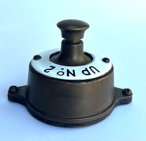 Southern Railway Sykes signal box brass plunger with an original enamel description ring 'Up No. 1'. In untouched ex-signal box condition complete with all parts and internal component including fixing base plate - stamped 'S.Y.X'. Please view images for condition details.