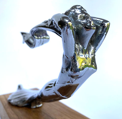 An original 1930’s Buick ‘Flying Goddess’ hood mascot. Chrome finish in very good ex-vehicle condition. Nicely presented on a solid Oak base. Length 210mm. Height 115mm.