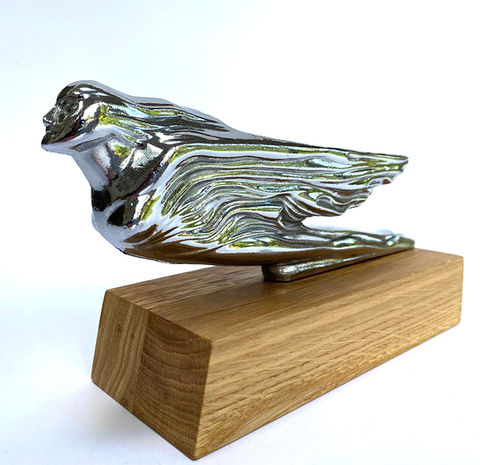 A stunningly elegant 1941 Cadillac Flying Goddess hood mascot, attractively mounted on a solid oak display base. An original mascot in excellent ex-vehicle condition. Mascot figure 220mm long.